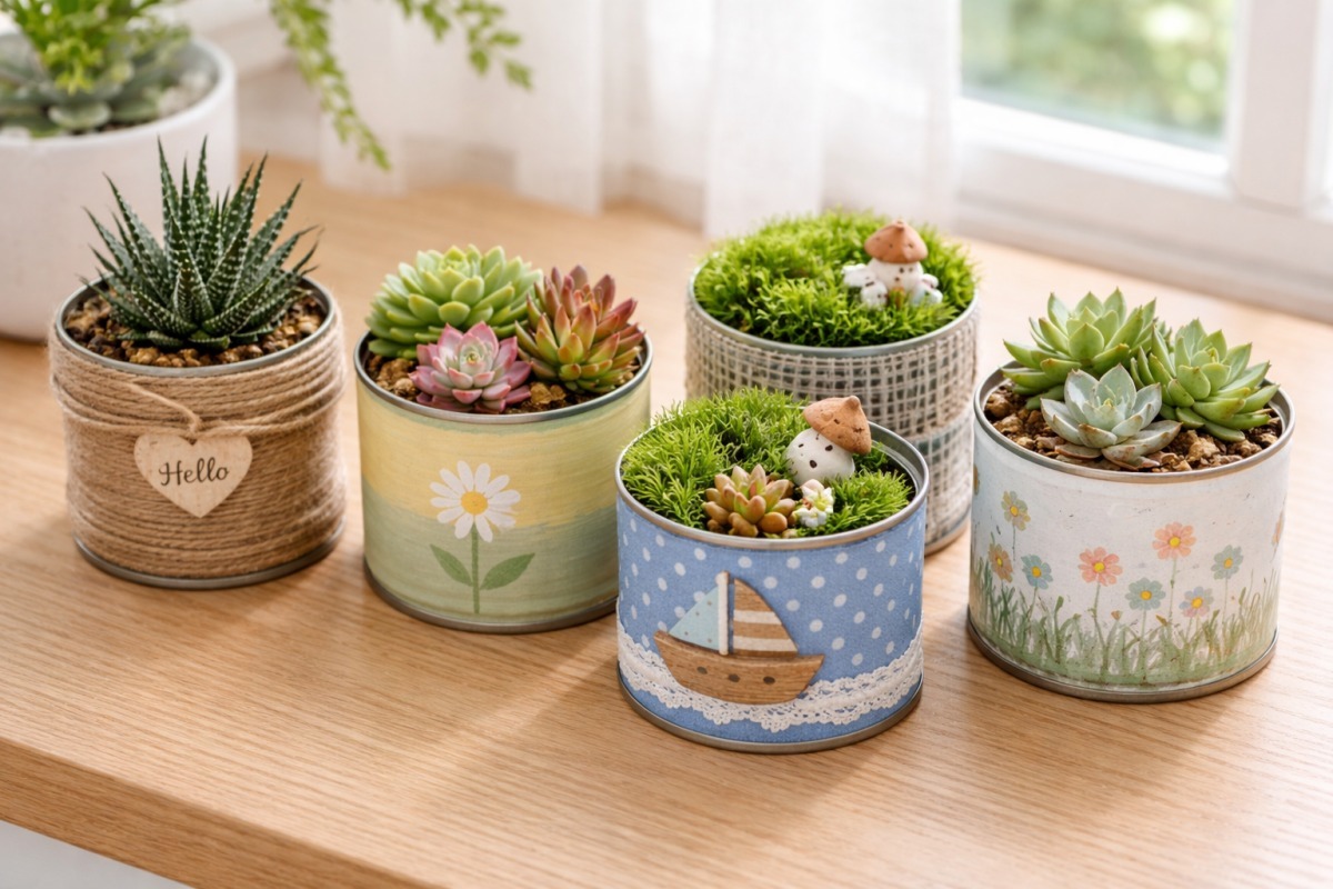 캔 하단에 송곳으로 3~5개의 배수 구멍을 뚫고 흙을 채우면 습기에 취약한 다육식물에 최적화된 화분이 된다. 하단에 배수 구멍을 뚫은 캔은 다육식물이나 이끼류 등 뿌리가 얕은 식물에 적합한 생육 환경을 제공하며, 금속 재질의 특성상 수분 증발 속도를 조절하는 데 유리하다.