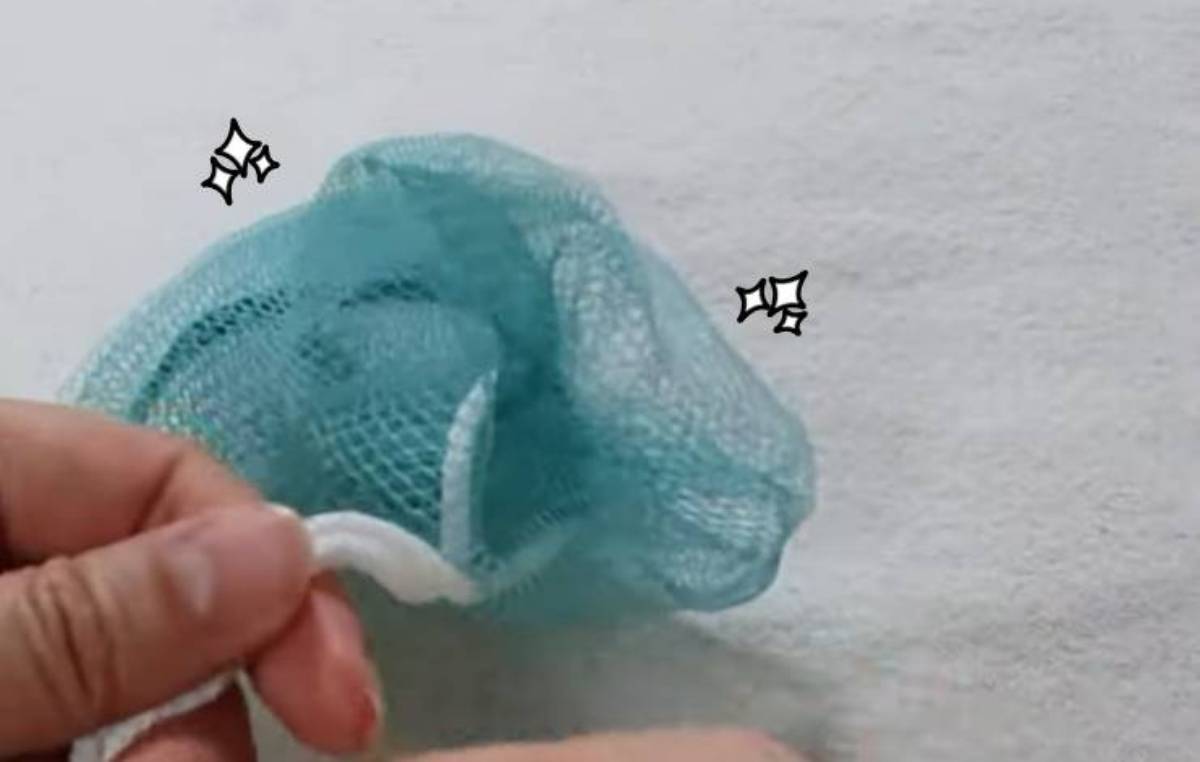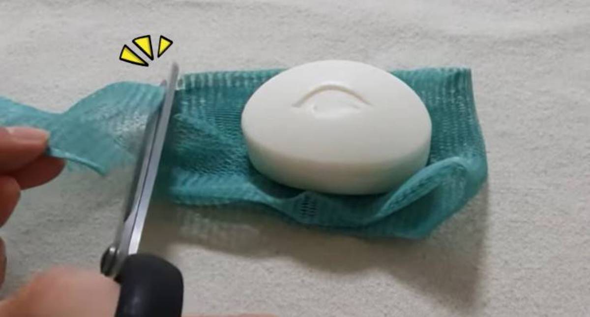 바로 '비누망'을 만드는 기발한 방버이다. 다 쓴 샤워볼을 이용해 비누망을 만들면 욕실에서 자주 생기는 불편을 줄이는 데 도움이 된다.