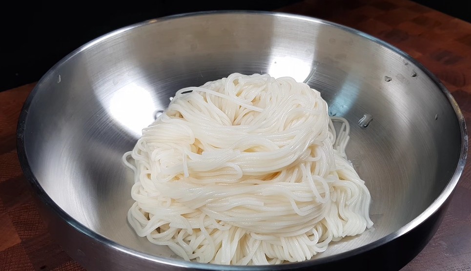 육수가 준비되면 소면을 삶는다. 소면 2인분을 끓는 물에 넣고 3~4분 정도 삶으면 된다. 국수를 삶을 때는 중간에 찬물을 한 번 부어주면 면이 더 쫄깃해진다. 삶은 소면은 찬물에 여러 번 헹궈 전분기를 제거한 뒤 물기를 빼준다.