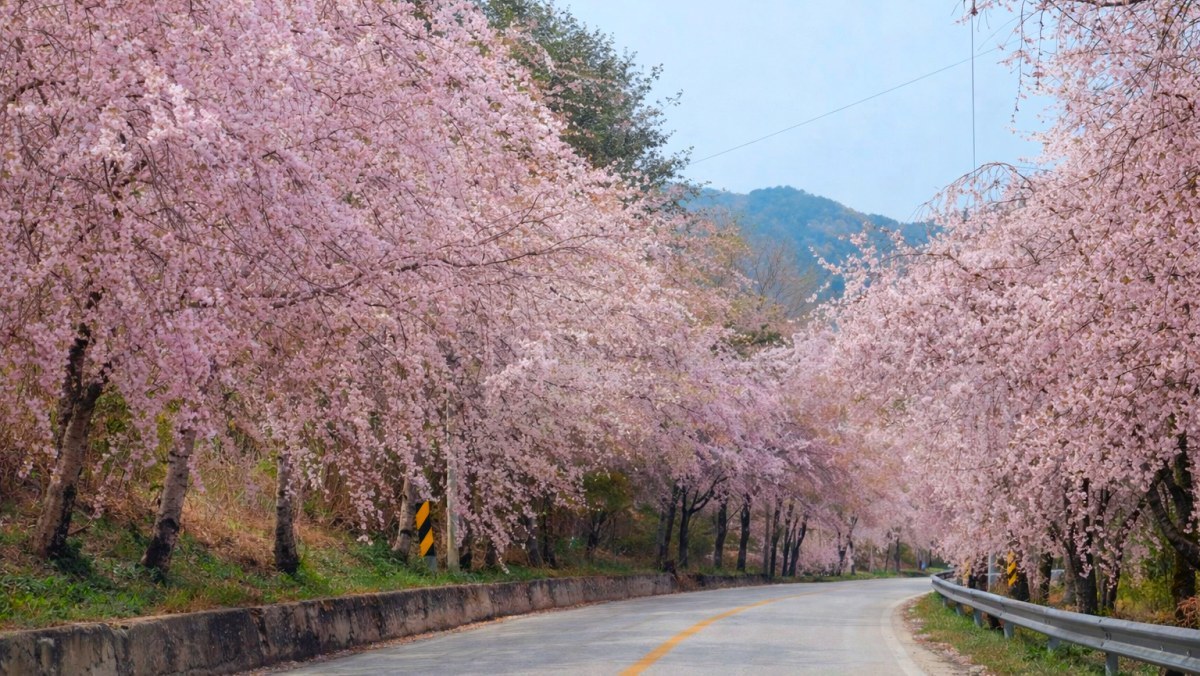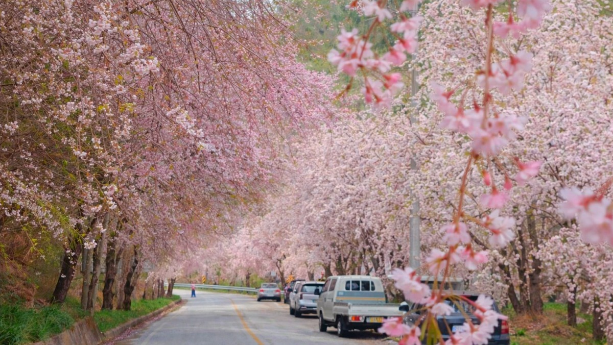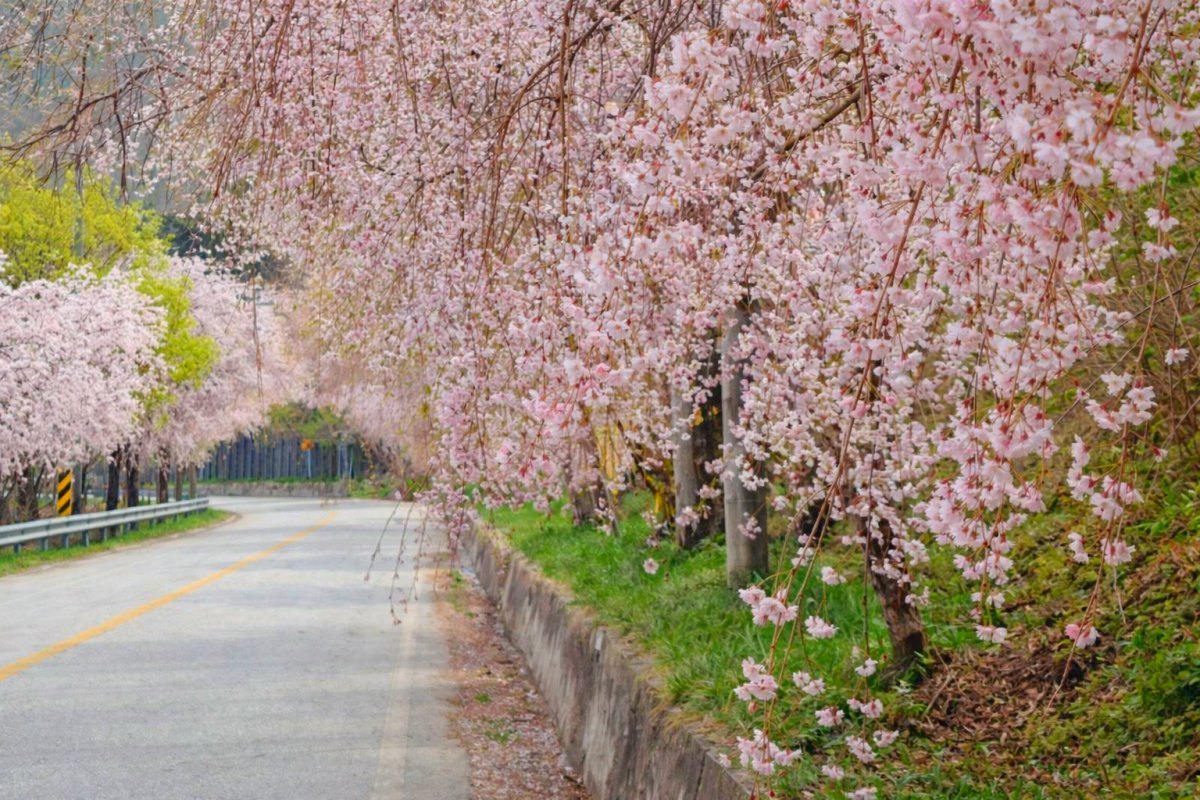 수양버들처럼 늘어진 분홍빛 장관으로 유명한 벚꽃길을 소개한다.