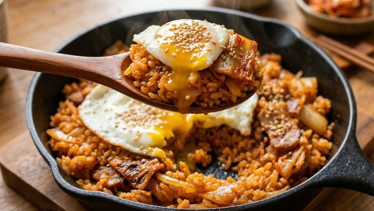김치볶음밥은 한국에서 가장 친숙한 가정식 메뉴 중 하나다. 기본 재료만 있어도 간단히 만들 수 있으며, 재료에 따라 풍미도 달라진다. 김치볶음밥에 계란 프라이를 더해줘도 좋고, 베이컨이나 햄을 넣어 볶아도 맛있다. 김가루를 뿌려 마무리하면 고소한 향이 더해진다.