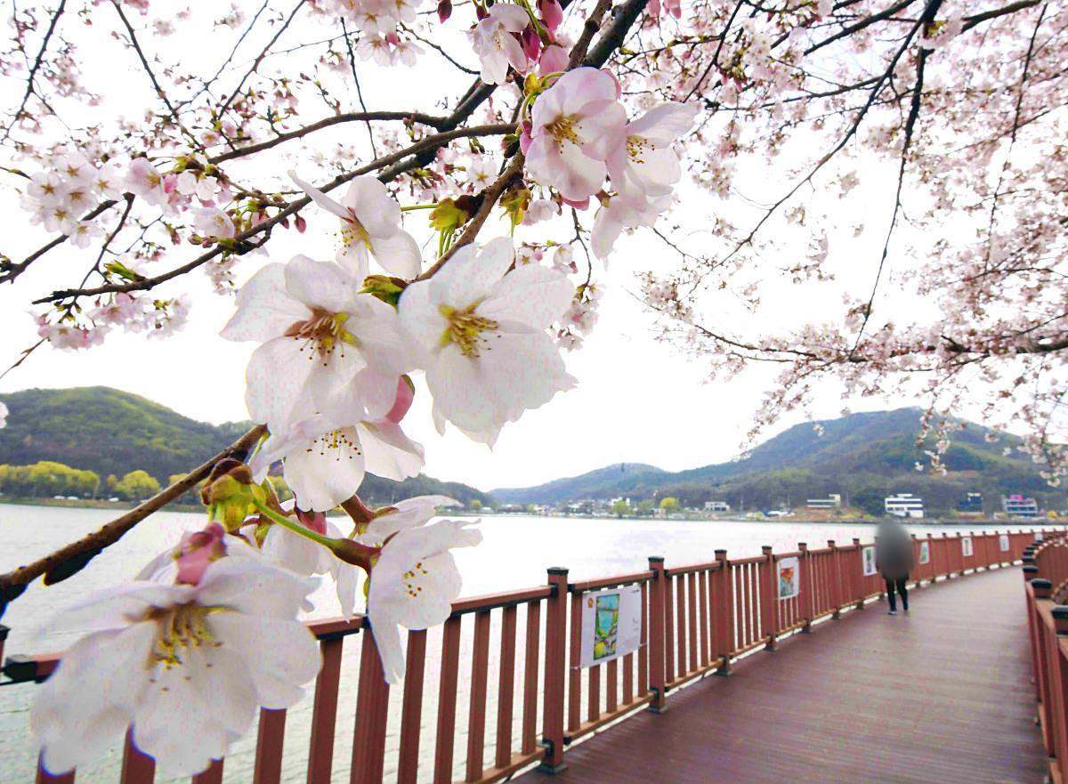호수 주변에는 카페와 음식점, 산책 공간이 어우러져 있어 머무는 즐거움을 더한다. 특히 호숫가를 따라 길게 이어진 수변 데크 산책로는 경사가 완만해 남녀노소 누구나 편안하게 걸을 수 있으며, 물 위를 가로지르듯 조성된 순환 코스는 호수의 정취를 가장 가까이에서 느끼게 해준다. 호수를 바라보며 쉬어갈 수 있는 베이커리 카페와 분위기 있는 공간들이 이어지고, 제철 식재료를 활용한 식당들도 자리해 가벼운 미식 여행을 즐기기에도 좋다. 계절마다 피어나는 야생화와 울창한 나무들은 산책길의 풍경을 풍성하게 만들고, 봄이면 진입로를 따라 벚꽃이 만개해 화사한 분위기를 더한다.