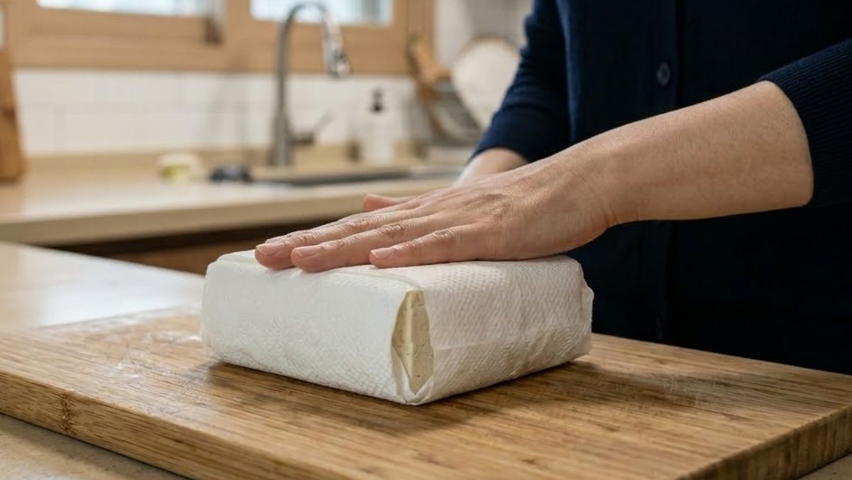 영상에 따르면 조리의 시작은 두부의 수분을 조절하는 것에서부터 출발한다. 부침용 두부 한 모를 꺼내 키친타월로 감싼 뒤, 도마처럼 무게감이 있는 도구로 눌러 물기를 빼주는 과정이 이 요리의 '킥 포인트'다. 수분을 충분히 제거해야 두부 특유의 식감이 살아나고 소스가 겉면에 잘 밀착되기 때문이다.