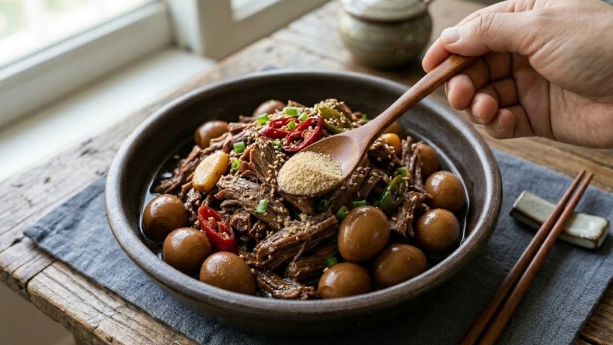입맛이 없거나 간편한 한 끼가 필요할 때, 장조림 간장은 훌륭한 '메밀소바 육수'나 '비빔국수 소스'가 된다. 차갑게 식힌 장조림 간장에 물을 1:3 비율로 희석하고 고추냉이를 살짝 곁들이면 시판 쯔유 못지않은 깊은 맛의 소바 장국이 된다. 비빔국수의 경우, 고추장과 식초, 참기름에 장조림 간장 한 스푼을 추가하면 간장 속의 감칠맛 성분이 고추장의 텁텁함을 잡아주어 훨씬 깔끔하고 감칠맛 나는 양념장을 만들 수 있다.