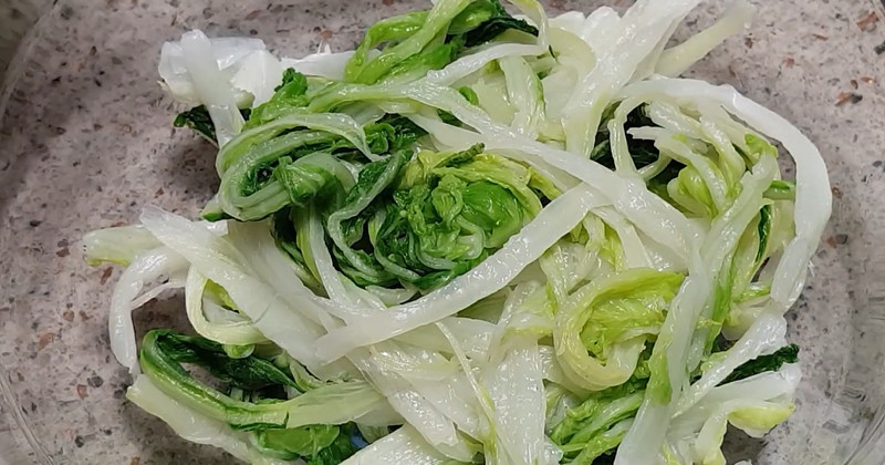 배추나물의 핵심은 ‘데치는 시간’과 ‘수분 조절’이다. 먼저 배추는 겉잎보다는 속잎 위주로 준비하는 것이 좋다. 흐르는 물에 깨끗이 씻은 뒤, 잎과 줄기를 적당한 길이로 썬다. 이때 줄기 부분은 조금 더 얇게 썰어야 데쳤을 때 식감이 균일해진다.