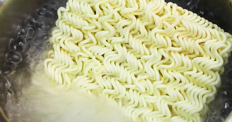 한편, 다른 냄비에서는 라면 면을 삶는다. 물을 끓인 뒤 면을 넣고 약 2분 30초에서 3분 정도만 삶는다. 일반 조리 시간보다 약간 덜 익히는 것이 좋다. 이후 찬물에 한 번 헹궈 전분기를 제거하고 물기를 최대한 빼준다. 이 과정을 거쳐야 면이 팬에서 볶을 때 뭉치지 않고 탱글한 식감을 유지할 수 있다.