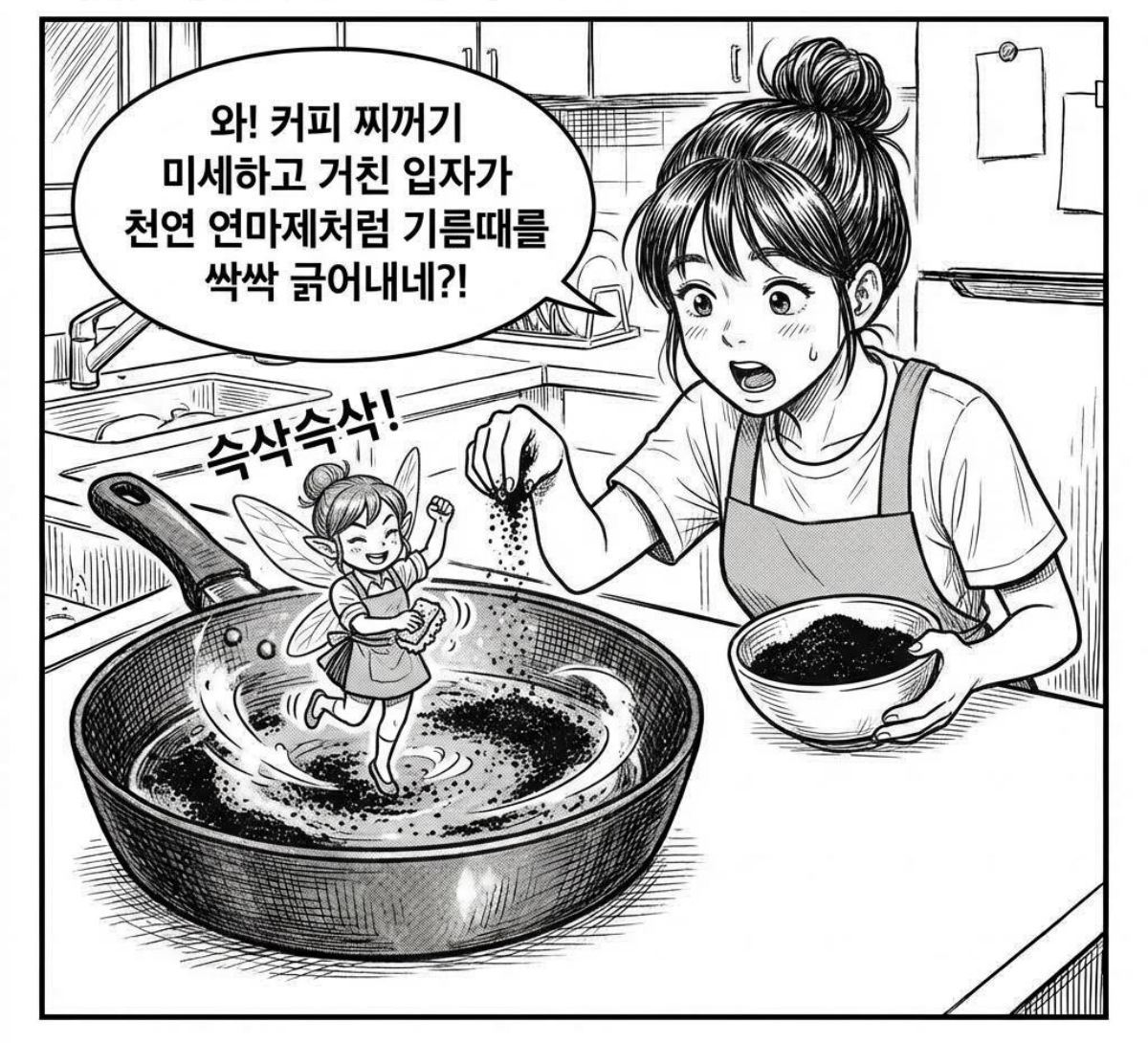 기름기가 심한 식기에 커피 찌꺼기를 뿌린 뒤 가볍게 문지르면 화학 세제 사용량을 대폭 줄이면서도 뽀득뽀득한 세정 효과를 얻을 수 있다. 이는 수질 오염을 방지하는 환경 보호 효과와 더불어 주방 가전의 수명을 늘리는 경제적인 대안이 된다.