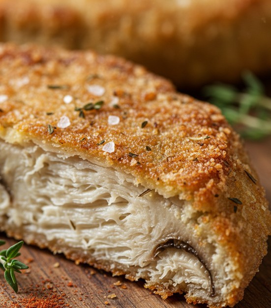 이 요리가 고기처럼 느껴지는 이유는 조리 방식에 있다. 단순히 볶거나 데치는 것이 아니라, 얇게 썰어 수분을 조절한 뒤 반죽을 입혀 구워내면서 표면에 ‘겉면 식감’을 만들어주기 때문이다. 이 과정이 고기의 겉면과 유사한 질감을 형성해 만족도를 높인다.