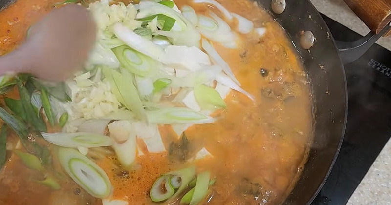 마지막 단계에서 대파를 듬뿍 넣는다. 이때 불을 너무 오래 유지하지 않는 것이 중요하다. 대파는 오래 끓일수록 향이 날아가고 질감이 무를 수 있기 때문에, 넣은 뒤 2~3분 정도만 끓여 아삭함과 향을 살리는 것이 좋다. 기호에 따라 다진 마늘을 약간 추가하면 풍미가 더욱 깊어진다.