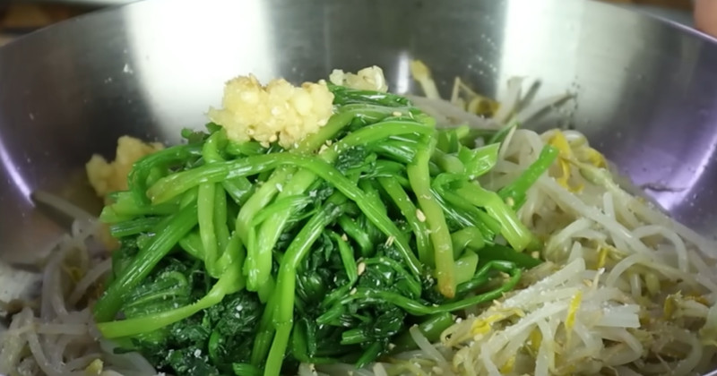 핵심은 단 하나다. 숙주와 미나리를 데칠 때 절대 소금을 넣지 않는 것. 이 간단한 원칙만 지켜도 완성도의 차이가 확연히 달라진다. 소금 없이 데치면 숙주의 조직이 덜 무너지고, 불필요한 수분 배출이 줄어들어 훨씬 아삭한 식감을 유지할 수 있다.