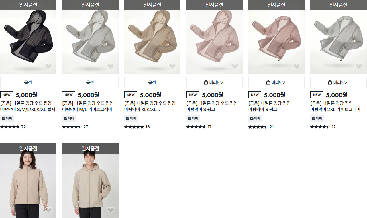 일반 브랜드 바람막이가 수만 원에서 수십만 원대에 판매되는 것과 비교하면 압도적인 가격 차이다. 아웃도어·스포츠 브랜드의 기능성 바람막이는 10만원을 훌쩍 넘기는 경우도 많다.