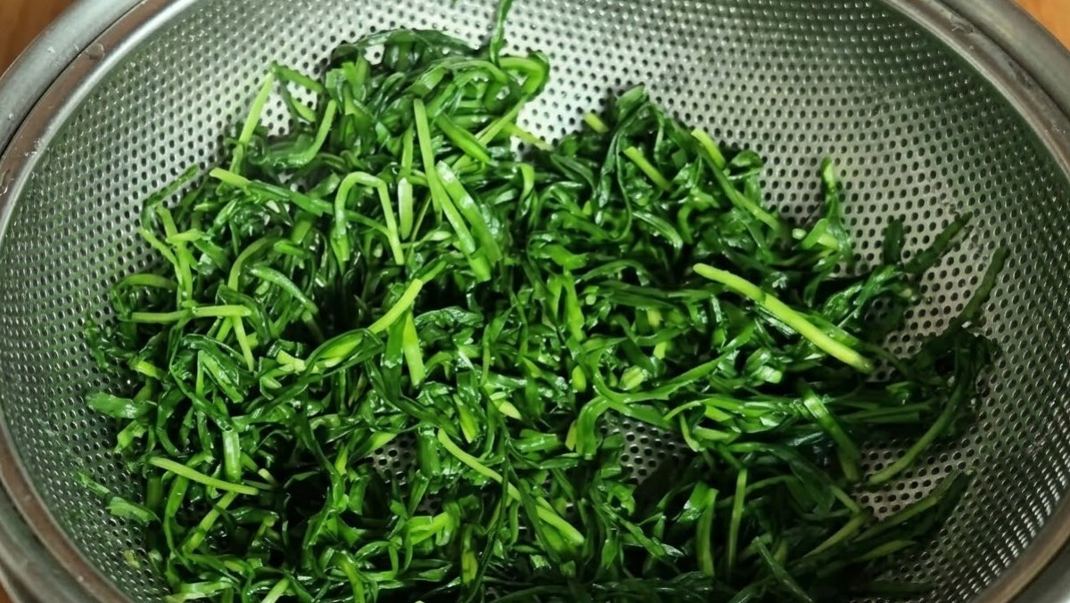 본격적인 조리는 찜기의 김이 충분히 올랐을 때 시작되는데, 부추를 넣고 뚜껑을 닫은 상태에서 약 30초간 증기를 쐬어준 뒤 뚜껑을 열어 위아래를 골고루 뒤집어주는 과정을 세 차례 정성껏 반복한다. 이렇게 알맞게 익은 부추는 좁은 곳에 뭉쳐두지 말고 넓은 쟁반 등에 펼쳐서 열기를 충분히 식히는 과정이 필수적이다.