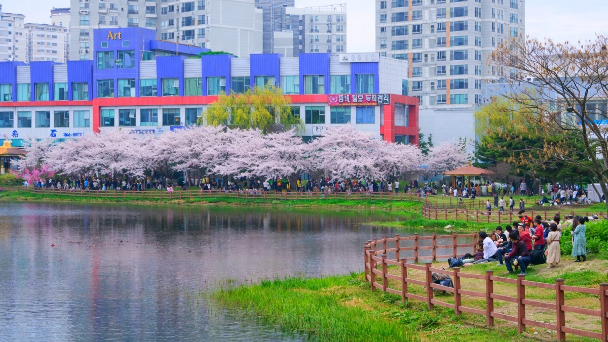 또 지하철 운천역에서 저수지로 들어오는 초입 구간에는 나무들이 촘촘하게 심어져 있어 머리 위로 벚꽃이 맞닿는 '벚꽃 지붕'이 형성된다. 매년 3월 하순부터 4월 초순 사이에 가장 화려한 벚꽃 터널을 만날 수 있다.