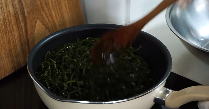 먼저 다시마채 준비다. 건다시마 20g 정도를 준비해 물에 10~15분 정도 담가 불린다. 이때 너무 오래 담가두면 점액질이 과하게 나와 식감이 흐물해질 수 있으므로 시간을 지키는 것이 중요하다. 불린 다시마는 흐르는 물에 가볍게 헹군 뒤 키친타월로 물기를 제거한다.