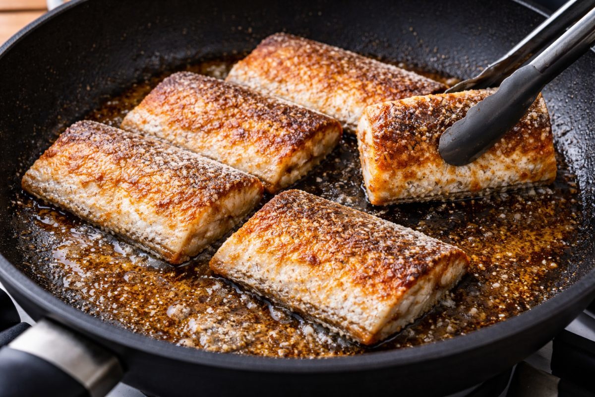 튀김가루 코팅은 기름이 사방으로 튀는 것을 막아주는 물리적 장벽 역할도 수행한다. 가루가 기름과 만나 빠르게 익으면서 생선 내부의 육즙이 밖으로 새어 나가는 것을 차단한다. 한쪽 면이 충분히 황금빛을 띨 때까지 기다렸다가 딱 한 번만 뒤집는 것이 살 터짐을 방지할 수 있다.
