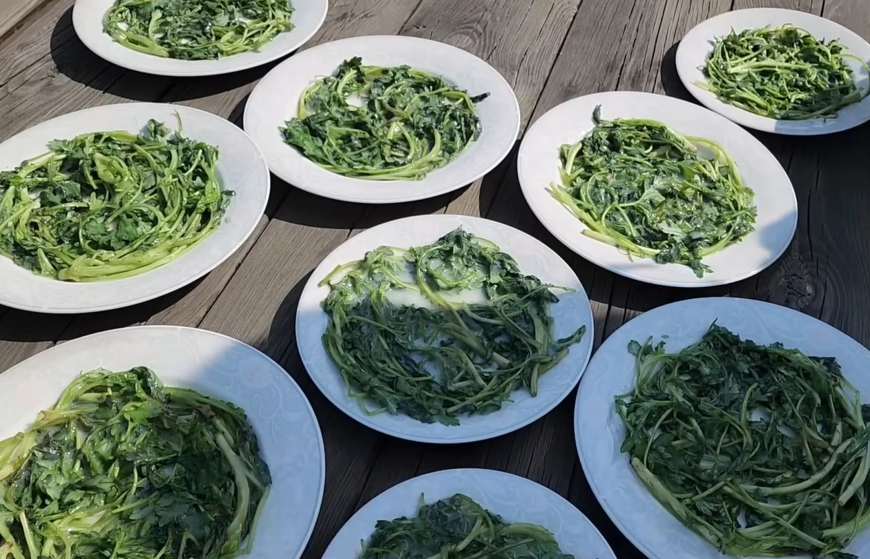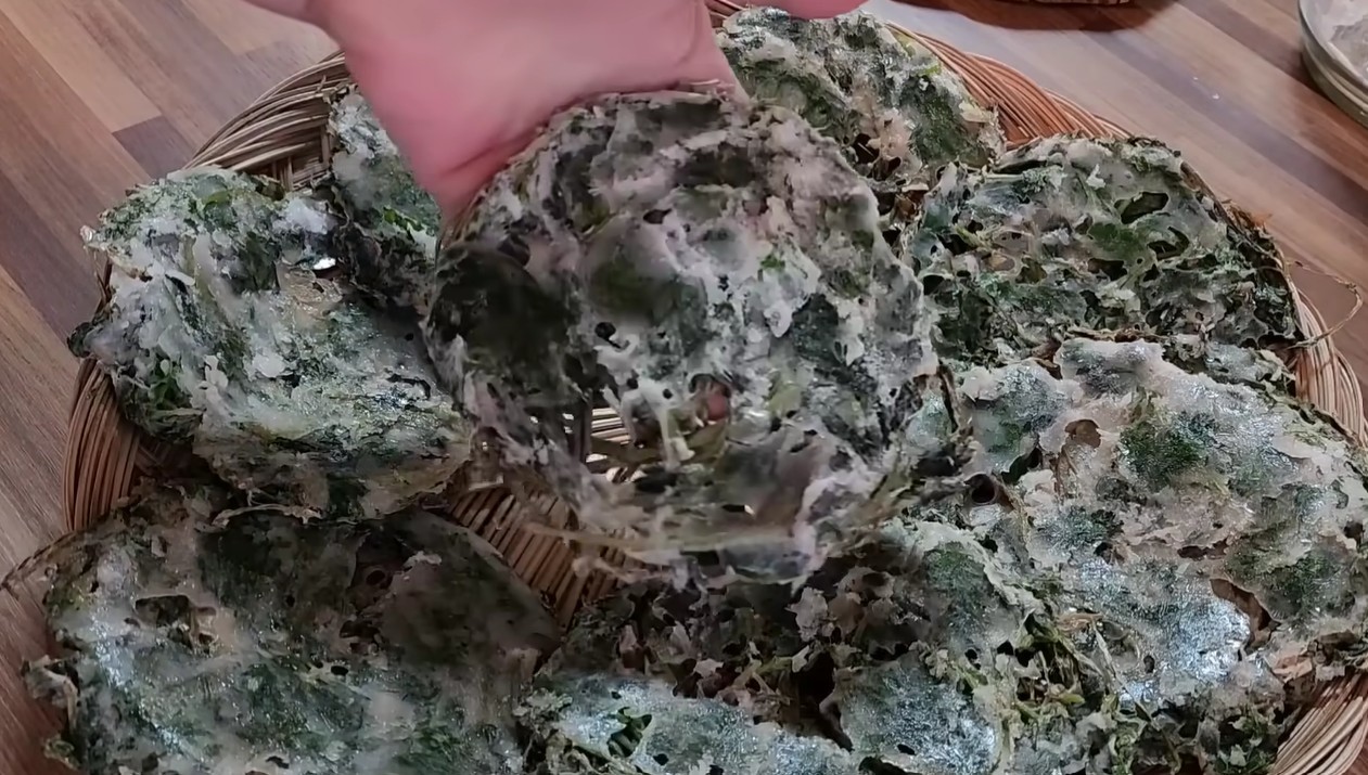 풀을 입힌 쑥은 서로 겹치지 않게 펼쳐 햇볕이나 통풍이 잘되는 곳에서 완전히 말린다. 이 과정이 쑥부각의 맛을 좌우한다. 수분이 남아 있으면 튀길 때 제대로 부풀지 않고 눅눅해질 수 있기 때문에, 바삭하게 마르는 것이 중요하다.