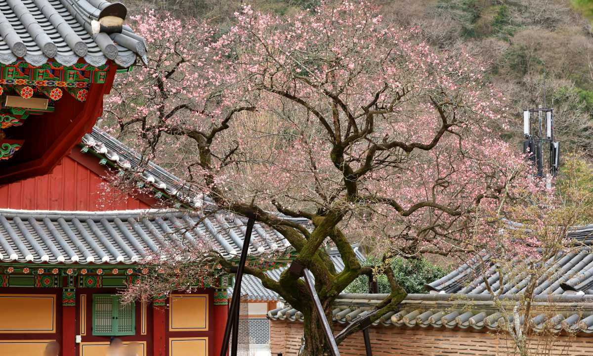 백양사의 봄을 대표하는 주인공은 단연 고불매다. 대웅전 옆 의상전 앞뜰에 자리를 잡은 이 매화나무는 우리나라 4대 매화 중 하나로 손꼽히며 고고한 기품을 자랑한다. 1700년경부터 스님들이 정성껏 가꾸어 온 역사를 간직하고 있으며, 사찰을 옮겨 지을 때도 함께 자리를 옮겨 지금까지 그 생명력을 이어오고 있다. 1947년 부처님의 근본 가르침을 기리는 고불총림이 결성되면서 '고불매'라는 이름을 얻었으며, 매년 3월 말이 되면 진분홍빛 홍매화가 만개해 산사 전체에 은은한 향기를 퍼뜨린다. 아래에서 세 갈래로 갈라져 뻗어 나간 줄기의 곡선과 선명한 꽃잎의 조화는 천연기념물이라는 명성에 걸맞은 우아한 아름다움을 보여준다.