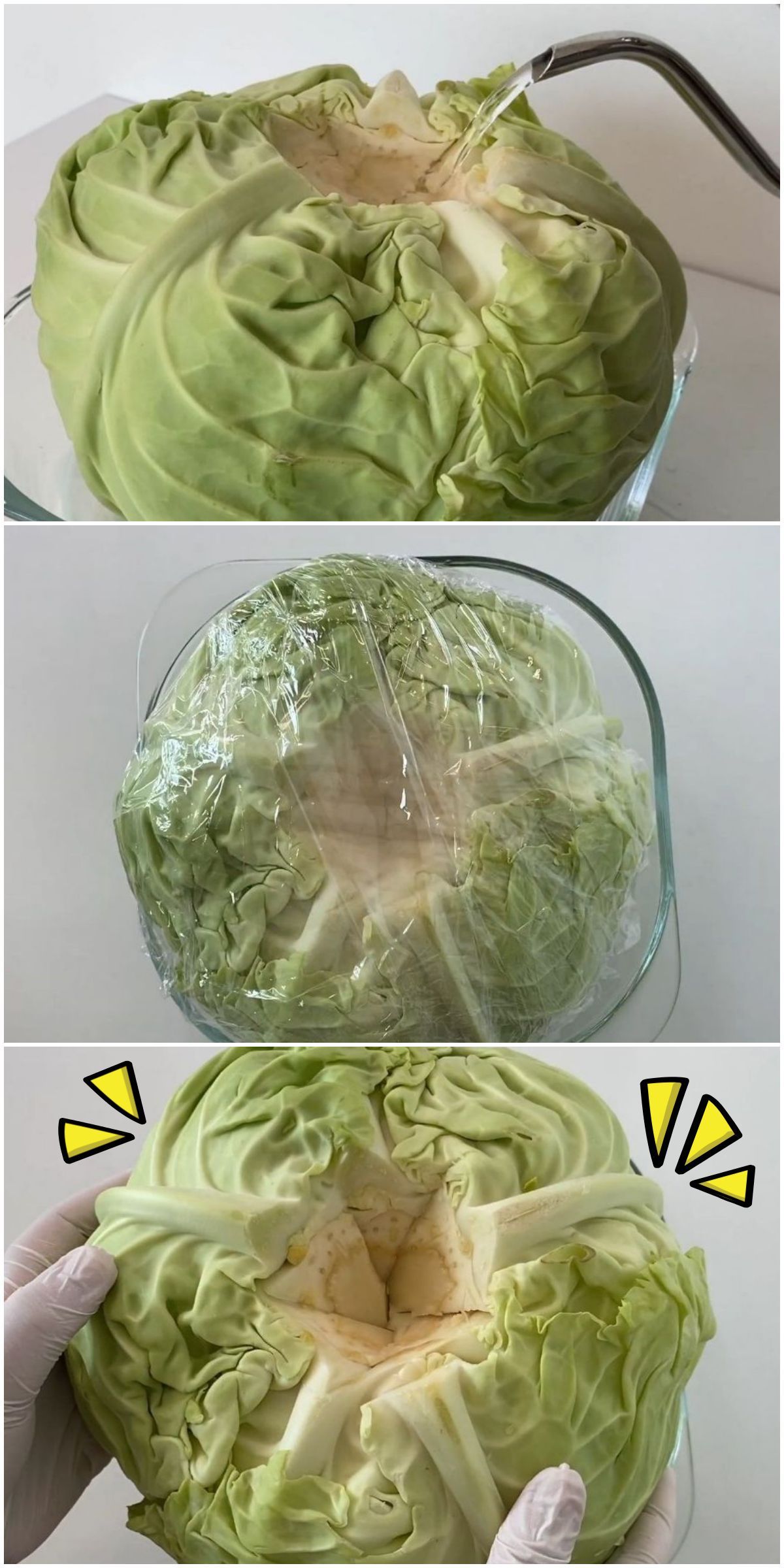 양배추 잎을 한 장씩 뜯다가 자꾸 찢어져 스트레스받은 경험이 누구나 한 번쯤 있을 것이다. 특히 양배추 쌈처럼 잎 모양을 살려야 할 때 찢어진 잎은 난감하다. 심지를 제거하고 뜨거운 물을 붓는 이 간단한 방법 하나로 의의로 문제가 손쉽게 해결된다.