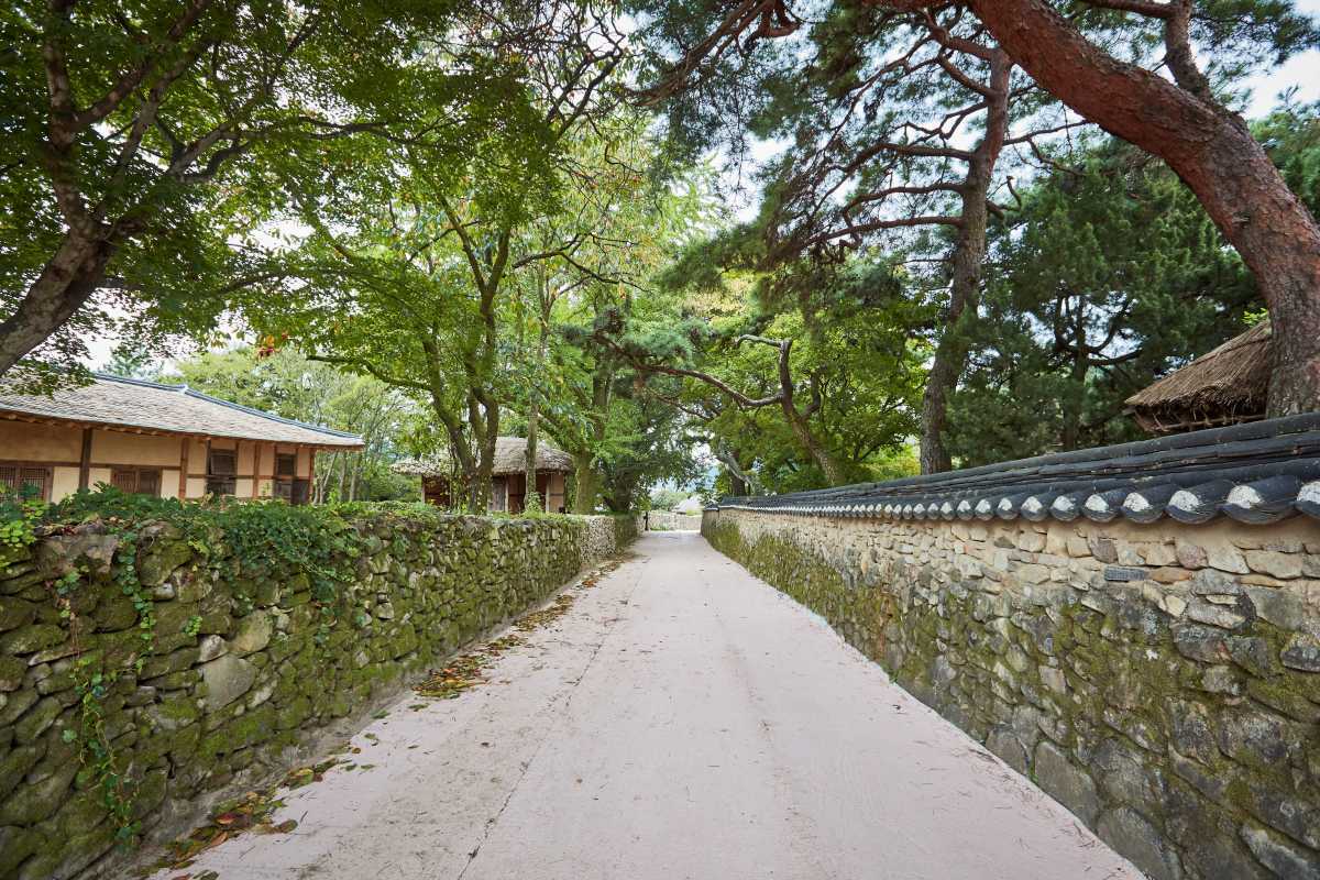 마을의 가장 큰 특징은 신분에 따른 가옥 구조가 이질감 없이 한데 어우러져 있다는 점이다. 기와지붕이 늠름한 양반가의 대저택과 둥근 초가지붕이 정겨운 서민 가옥이 자연스럽게 조화를 이룬다. 이는 조선시대의 사회 구조와 주거 문화를 연구하는 데 중요한 토대가 된다. 특히 양반가의 정원은 화려한 장식보다는 주변 자연 경관을 집 안으로 끌어들이는 차경의 미학을 잘 보여준다. 설화산에서 시작된 물줄기가 마을 안마당을 거쳐 흐르도록 설계된 수로와 인공 연못은 당시 선비들의 풍류와 지혜를 짐작하게 한다. 돌담 사이로 뻗어 나온 감나무 가지와 이끼 낀 돌틀은 계절마다 다른 빛깔을 내며 마을 풍경에 변화를 더한다. 5.3km에 달하는 돌담길은 마을의 집과 집을 연결하는 소통의 통로이자 외암마을만의 독특한 경관을 형성하는 핵심 요소다.