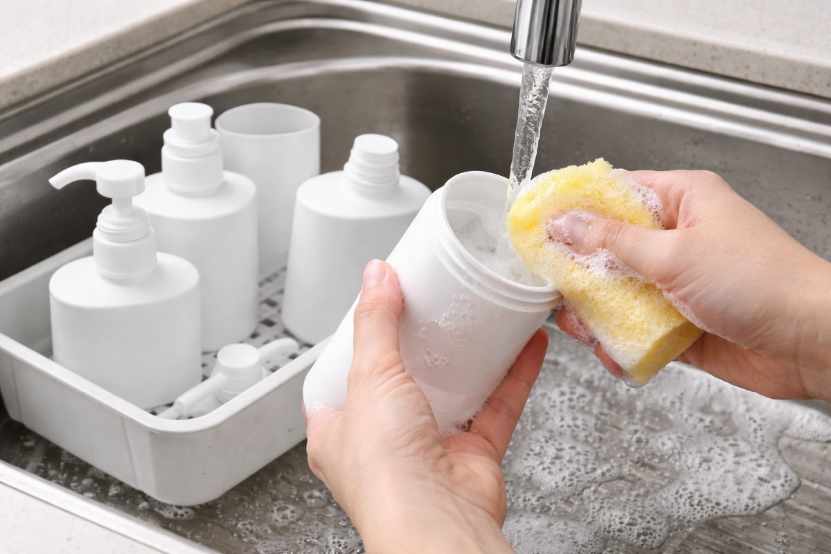 플라스틱 로션통을 본격적으로 활용하기 전, 철저한 세척은 필수다. 먼저 용기 내부의 유분기를 완벽히 제거하기 위해 따뜻한 물과 베이킹소다를 활용한다. 용기의 3분의 1 정도를 40~50도 사이의 미온수로 채운 뒤 베이킹소다를 한두 큰술 넣어 30분 이상 충분히 불린다. 이때 베이킹소다의 약알칼리성 성분이 로션의 지방산을 중화해 기름기를 분리하는 역할을 해준다.