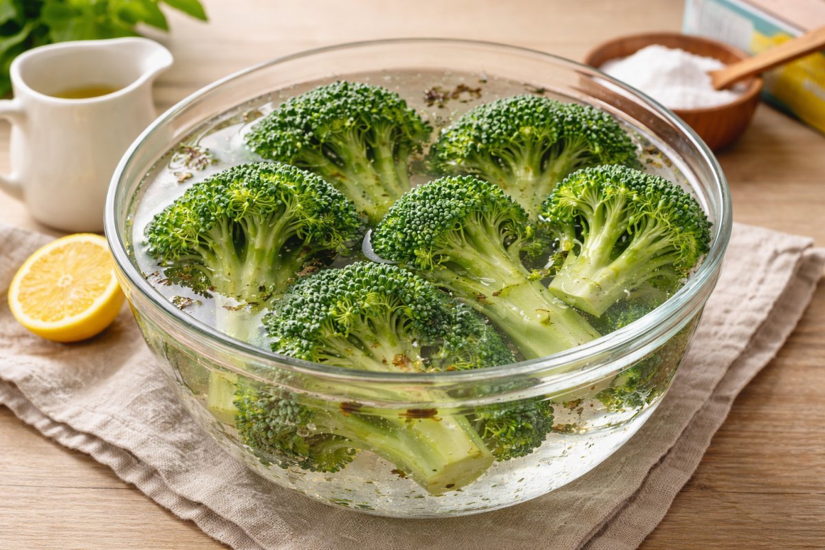 브로콜리 표면에는 외부 오염으로부터 자신을 보호하기 위한 천연 왁스 성분(Cuticular Wax)이 코팅되어 있다. 이 때문에 흐르는 물에 그냥 씻을 경우 물방울이 겉면을 타고 흘러내려 꽃봉오리 내부의 먼지, 기생충, 잔류 농약이 그대로 남게 된다.