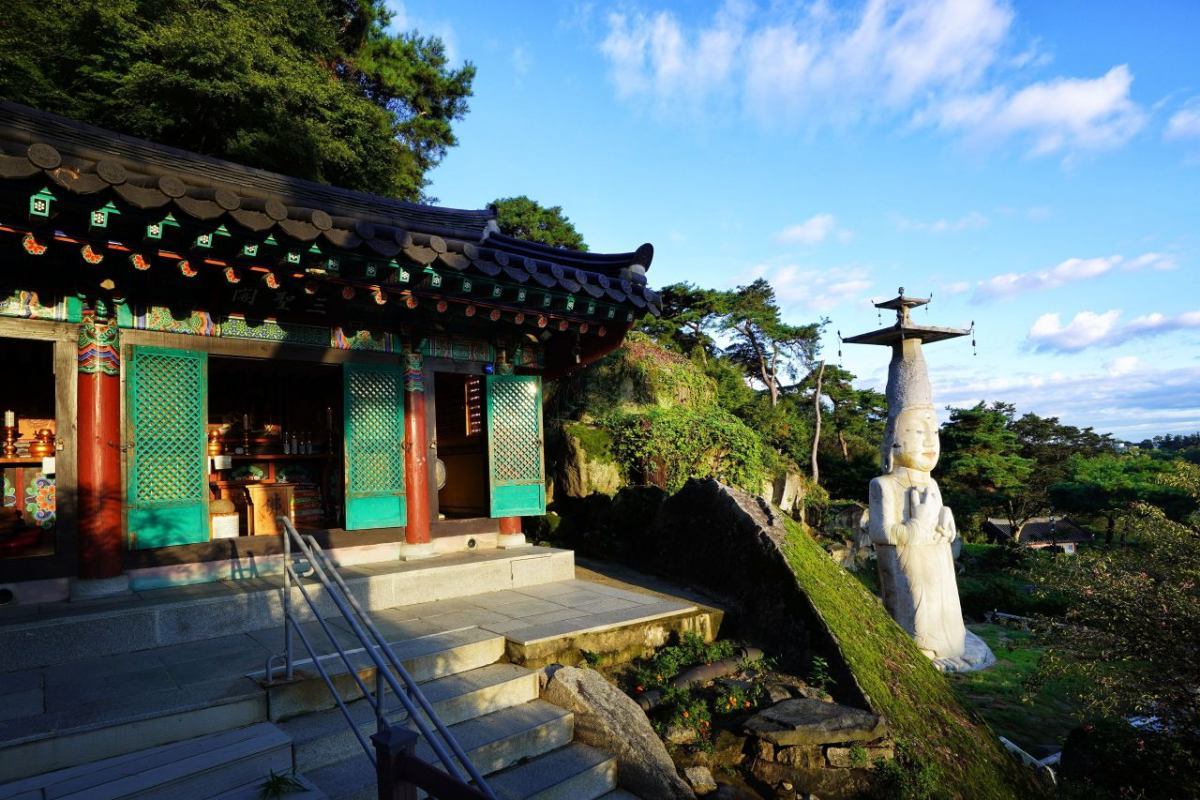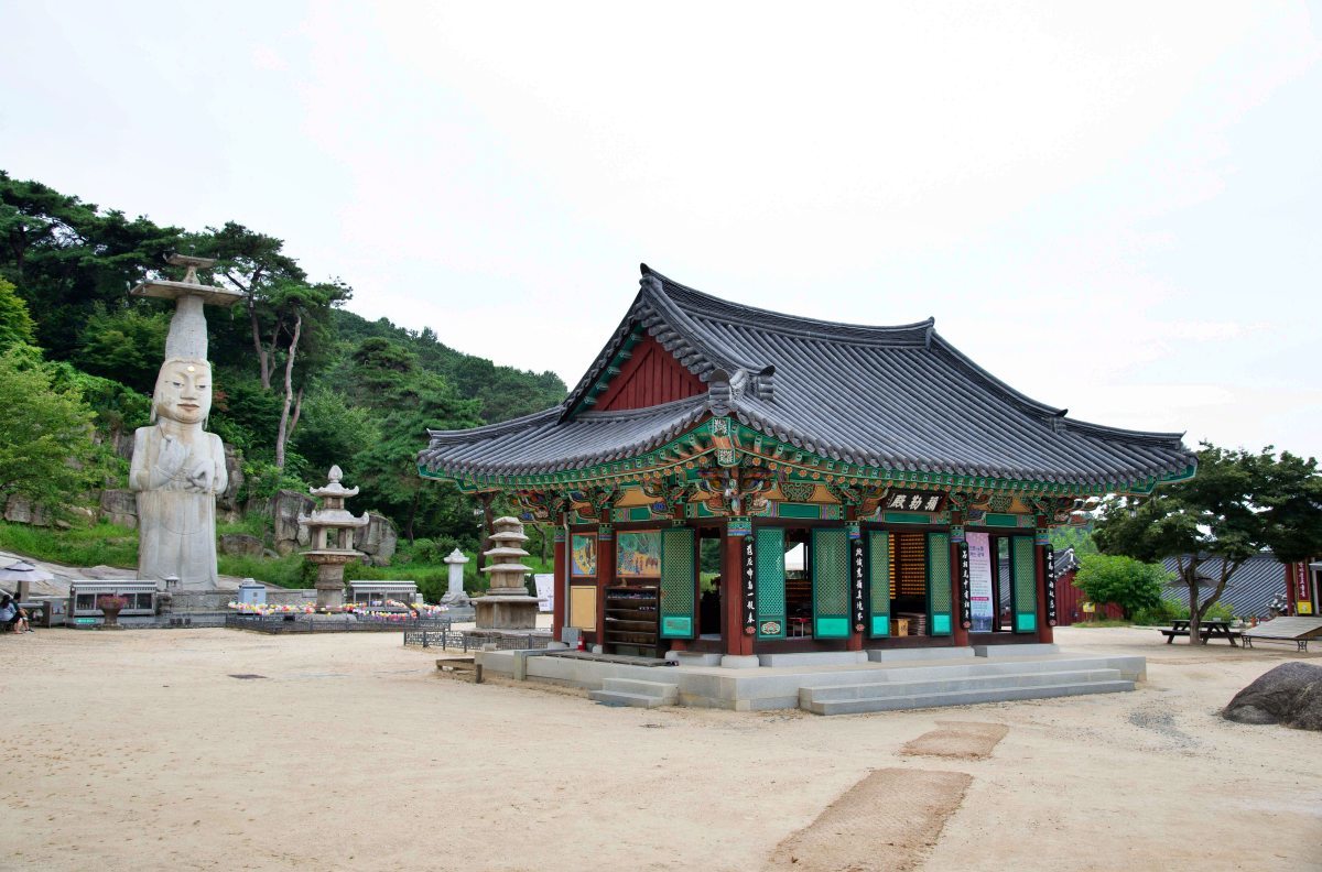 관촉사는 고려 광종 19년인 968년에 승려 혜명이 창건했다. 사찰 내에서 가장 눈길을 끄는 유물은 단연 은진미륵이라 불리는 석조미륵보살입상이다. 국보 제323호인 이 불상은 높이가 18m에 달하며, 우리나라에 남아 있는 미륵불 가운데 가장 큰 규모를 자랑한다. 거대한 몸체에 비해 얼굴과 관이 유난히 강조된 독특한 조형미는 고려 초기 충청도 지방에서 유행했던 불교 미술의 특징을 잘 보여준다. 불상의 인자하면서도 위엄 있는 표정은 세월의 흐름 속에서도 변함없이 자리를 지키며 이곳을 찾는 이들에게 차분한 인상을 남긴다. 거대한 돌을 쌓아 올린 투박한 공법에도 얼굴에 서린 온화한 표정이 보는 위치에 따라 조금씩 다르게 느껴지는 점도 특징이다.