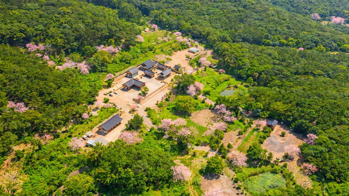 경북 경산에는 고즈넉한 산사와 화려한 겹벚꽃이 어우러져 절경을 이루는 숨은 명소가 있다.