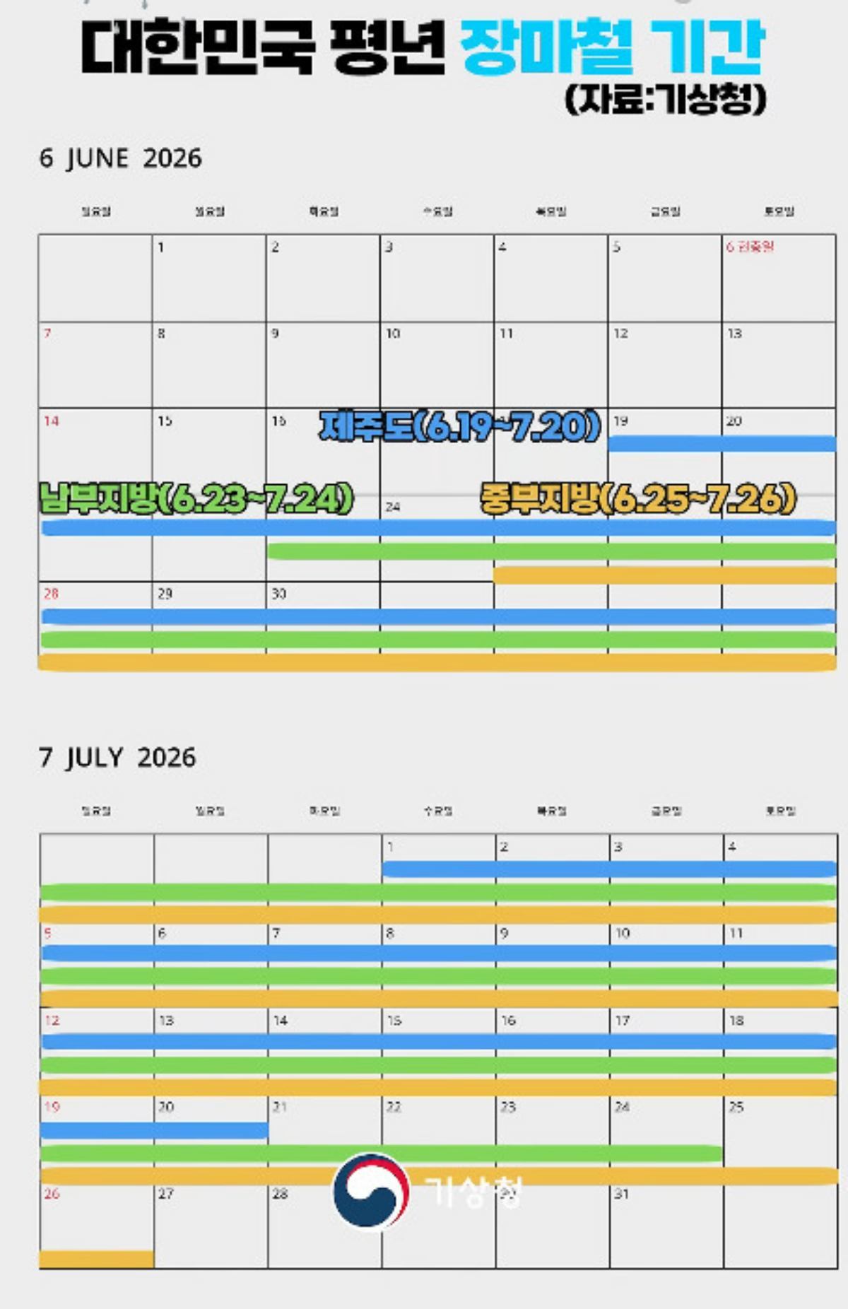 최근 SNS를 중심으로 올해 장마 시작일과 종료일을 명시한 게시물이 빠르게 퍼지고 있다. 그러나 기상청은 이에 대해 공식 입장을 냈다.