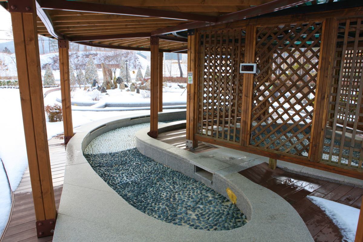 1645㎡ 규모의 공원 내부에는 원형족탕과 보행족탕, 세족탕 등이 갖춰져 있다. 족욕을 시작하기 전에는 위생을 위해 세족탕에서 발을 먼저 씻은 뒤 탕을 이용해야 한다. 따뜻한 물에 발을 담그고 있으면 산행으로 뭉친 다리 근육이 한결 풀리는 느낌을 받을 수 있다. 물속 자갈 위를 천천히 걷는 보행족탕은 발바닥을 자극해 장시간 걷기로 쌓인 피로를 덜어내는 데 도움이 된다. 4월의 선선한 바람을 맞으며 족욕을 즐기다 보면 멀리 설악산 자락과 외설악 풍경이 시야에 들어와 한층 여유로운 분위기를 더한다. 따뜻한 온기와 산자락의 풍경이 어우러져 잠시 쉬어가는 시간 자체가 여행의 일부처럼 느껴진다.