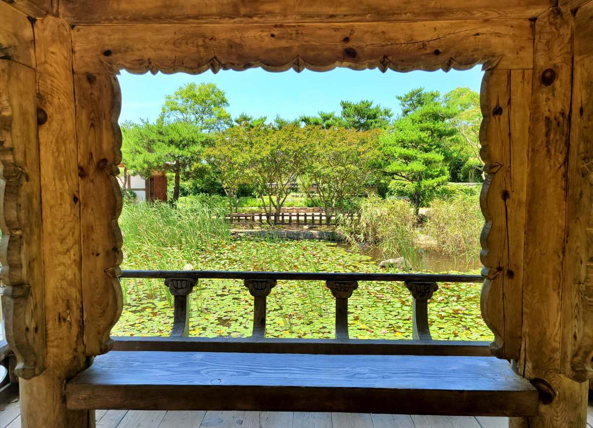안면도수목원의 핵심 공간 가운데 하나인 아산원은 한국 전통 정원의 미감을 살펴볼 수 있는 장소다. 7362㎡ 규모의 이 정원은 현대그룹 정주영 회장이 기증한 곳으로, 그의 호를 따 이름 붙여졌다. 자연의 흐름을 거스르지 않고 조화를 중시하는 한국 별서정원의 전통을 바탕으로 조성됐으며, 담양 소쇄원이나 보길도 부용동 정원에서 볼 수 있는 요소들도 곳곳에 반영돼 있다. 백제 시대 연못 형식인 방지를 중심에 두고 정자와 누정을 배치해 전통 정원의 구성을 보여준다. 연못 주변의 물소리와 돌 틈에 핀 작은 꽃, 수면 위로 비치는 나무 그림자가 어우러지며 차분한 분위기를 만든다.