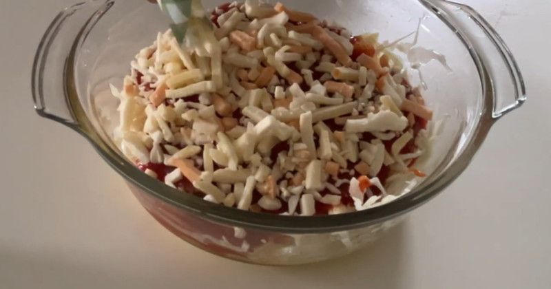 다음으로 소스를 준비한다. 팬에 버터를 녹인 뒤 밀가루를 넣어 볶아 루를 만든 후, 우유를 조금씩 부어가며 저어주면 부드러운 화이트 소스가 완성된다. 여기에 소금과 후추로 간을 맞추고, 기호에 따라 마늘이나 양파를 추가하면 풍미를 더할 수 있다. 완성된 소스를 양배추 위에 골고루 부은 뒤, 피자치즈를 듬뿍 올려준다.
