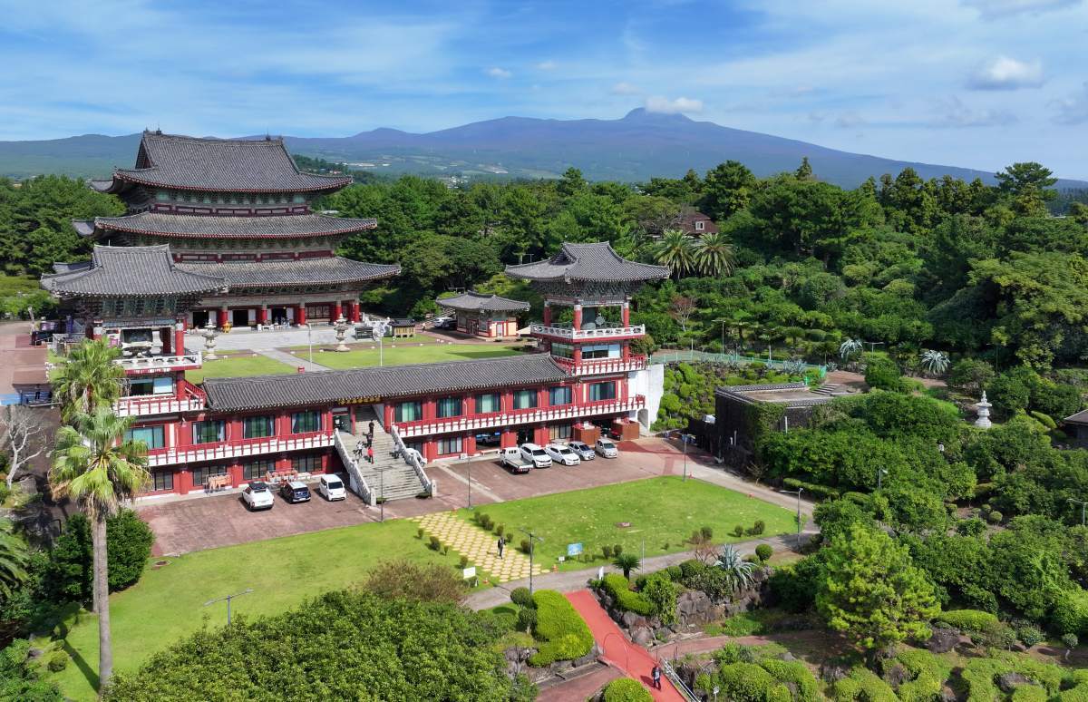제주 서귀포시 '약천사'는 제주의 풍경과 불교문화가 차분하게 만나는 공간이다. 서귀포의 바다와 하늘, 사찰의 건축미가 한눈에 들어와 여행 중 잠시 호흡을 고르며 둘러보기 좋다.