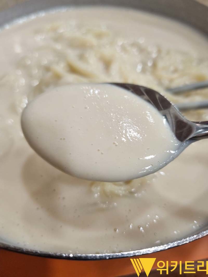 주문 후 몇 분이 채 지나지 않아 나온 콩국수는 고명 하나 없이 콩국과 면, 그리고 김치가 전부였다. 국물은 크림에 가까울 만큼 걸쭉했다. 한 모금 머금으면 비린내는 전혀 없고, 직접 갈아낸 생콩 특유의 부드러움과 고소함이 묵직하게 깔렸다. 설탕이나 소금으로 간도 따로 손볼 필요가 없었다.