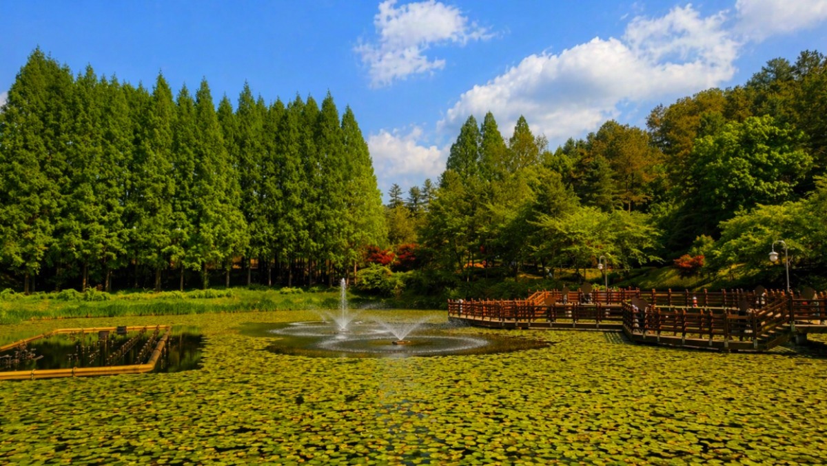 숲길에는 124종 11만 6000여 그루의 조경수와 143종의 야생화가 식재돼 있다. 자연 그대로의 모습을 온전히 보존하고 있어 고라니나 꿩 같은 야생동물을 마주치는 경험도 기대할 수 있다. 특히 양어장 위로 흐르는 음악분수는 산책의 피로를 씻어주는 청남대만의 명물로 자리 잡았다.