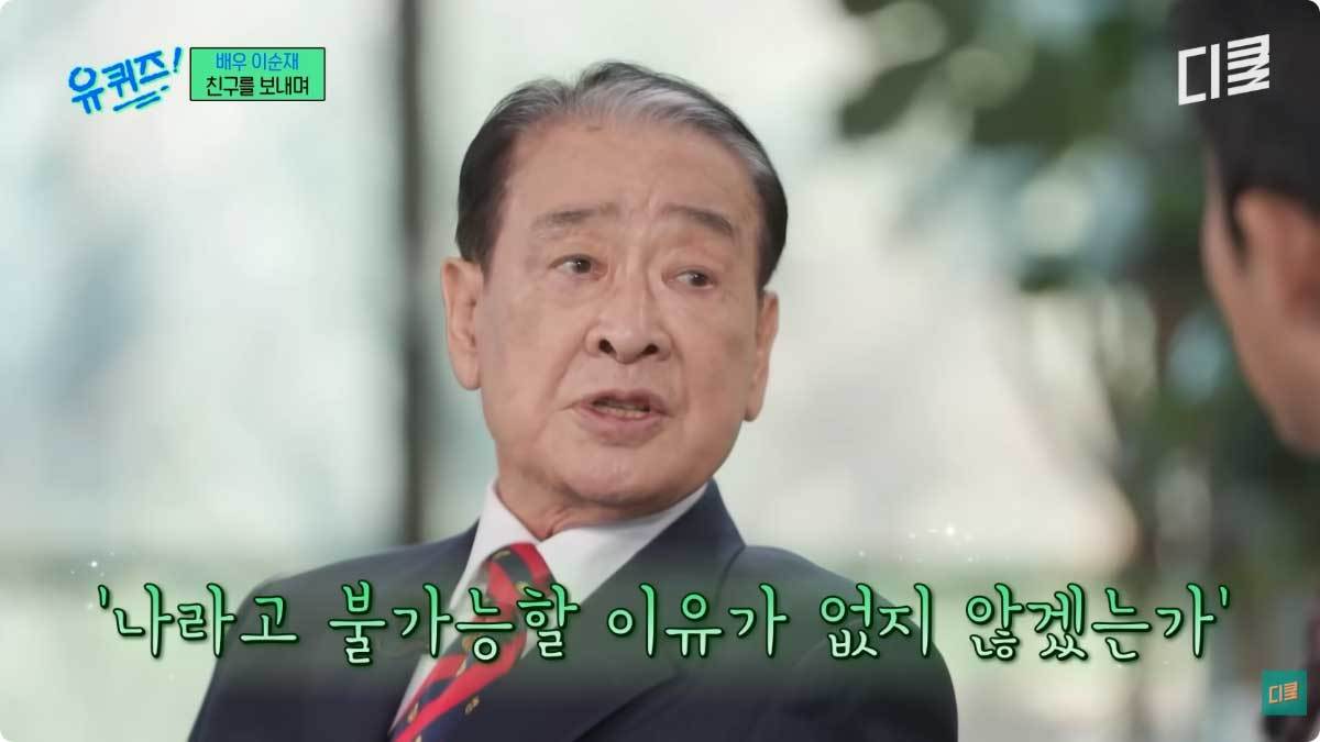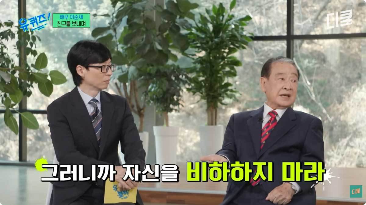 고(故) 이순재는 생전 tvN ‘유 퀴즈 온 더 블럭’에 출연해 “인생은 무엇인가”라는 질문을 받았다. 그는 “자기 자신을 비하하지 말라”며 “할 수 있다는 확신을 가지고 정진하면 결국 이루어진다”고 말했다.