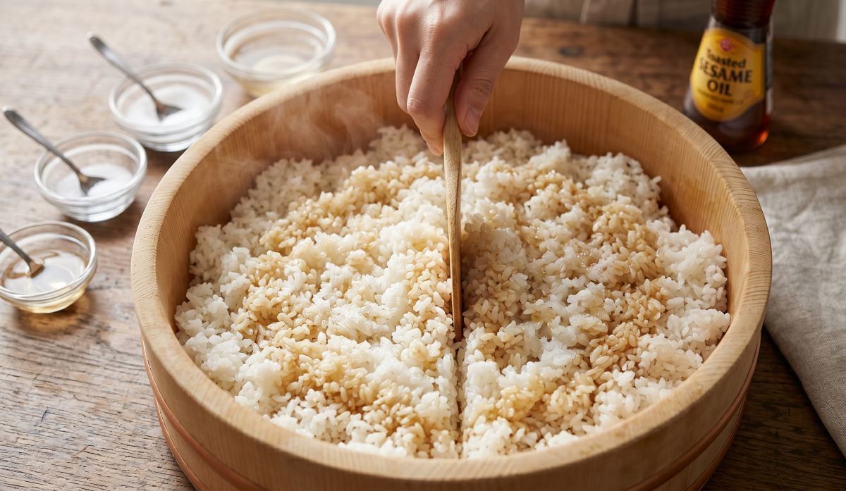 설탕 역할도 단순히 단맛 추가에 그치지 않는다. 설탕은 식초의 날카로운 산미를 부드럽게 완화하는 동시에, 밥알 표면에 얇은 윤기를 더해 식감을 매끄럽게 만드는 데 기여한다. 이 두 재료가 소량으로 결합됐을 때 나타나는 효과가 바로 많은 사람들이 "왠지 밥맛이 다르다"고 표현하는 그 느낌이다.