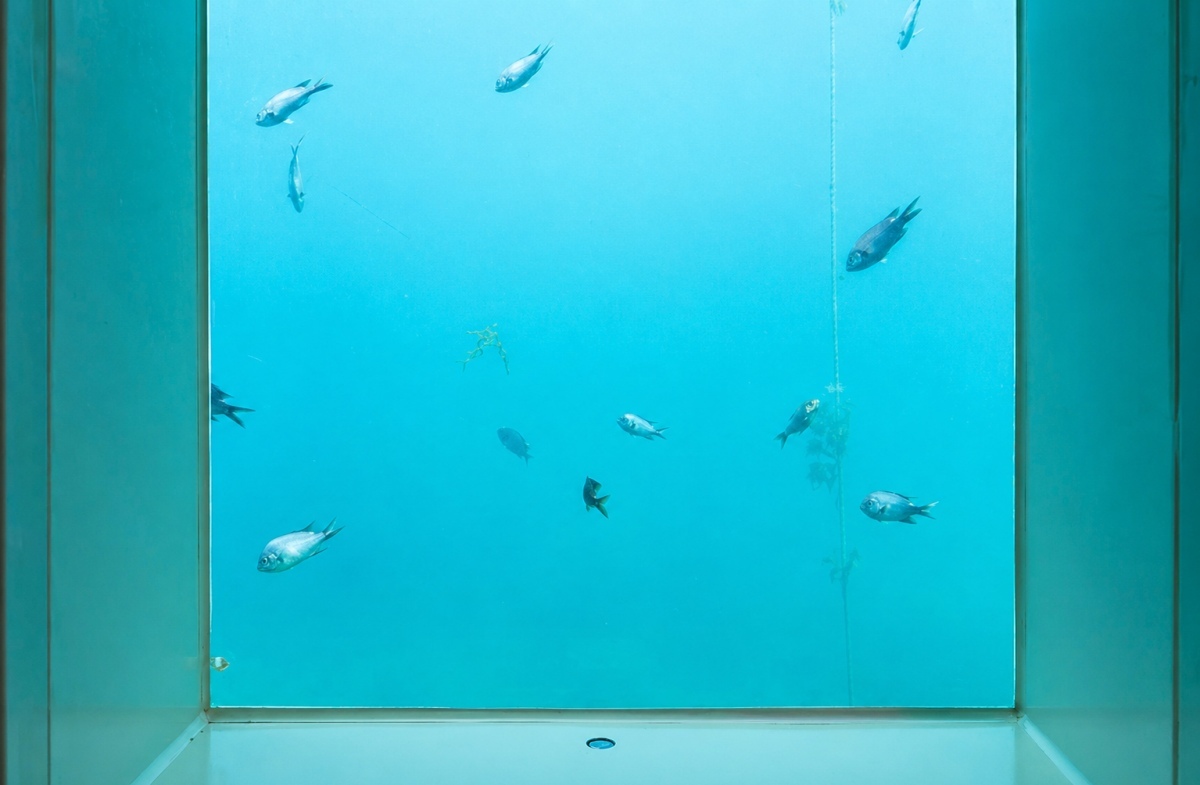 내부로 들어서면 계단과 엘리베이터를 통해 수심 6m 아래 관람층으로 내려간다. 관람층에는 바깥 바다를 볼 수 있는 창이 둘러져 있어 울릉도 연안의 해중 생태를 가까이 살필 수 있다. 창밖에는 미역과 다시마 같은 해조류가 물살에 흔들리고, 그 사이로 물고기가 오간다. 수족관처럼 생물을 가둬 보여주는 방식이 아니라, 바다에 사는 생물을 창을 통해 관찰하는 구조라 현장감이 좋다. 창밖에 설치된 먹이통 주변으로 물고기가 모여드는 모습도 볼 수 있다.