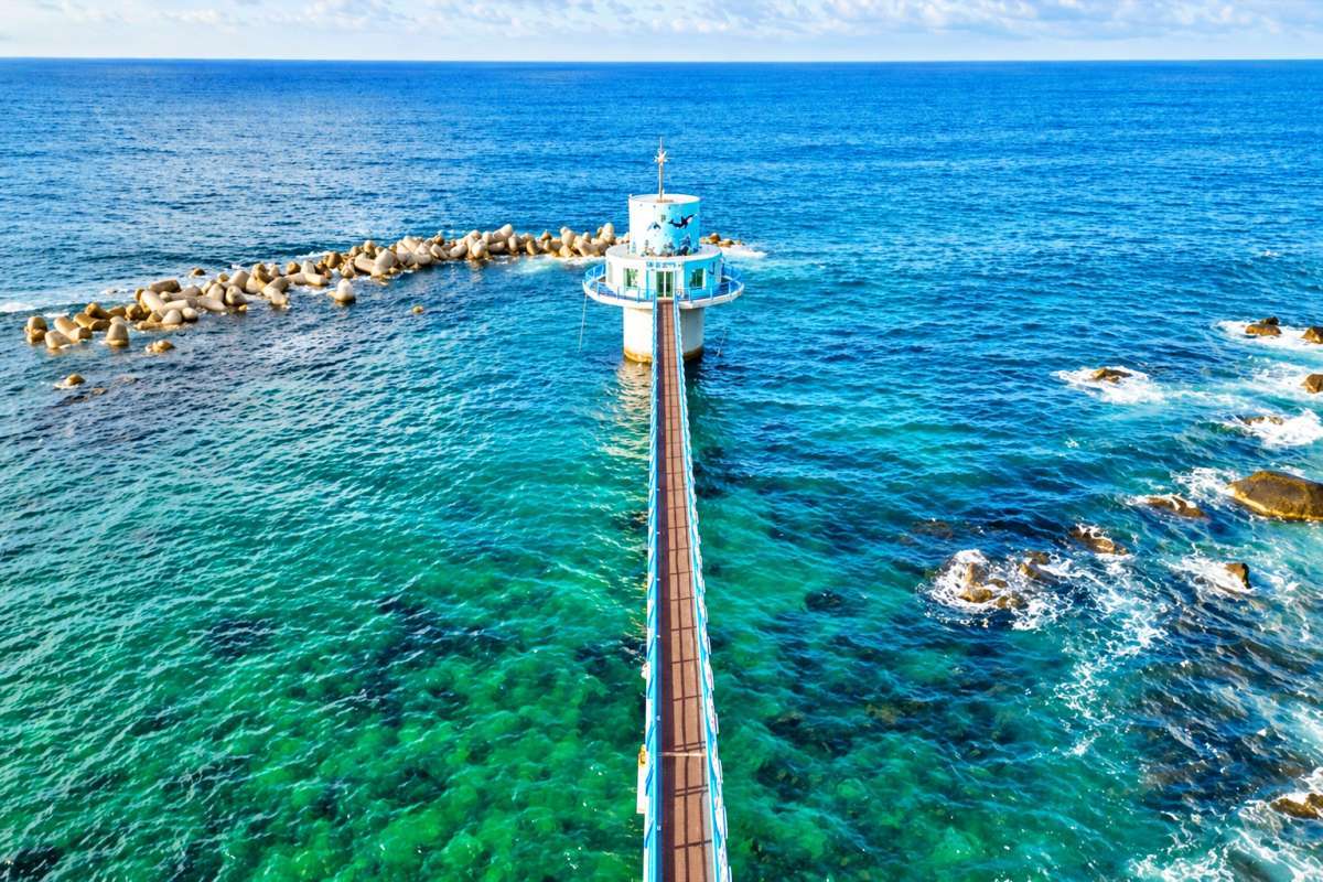 울릉도 북쪽 천부항 해안에서 바다를 향해 난 보행교를 따라가면 원통형 전망 시설이 나타난다. 천부해중전망대는 바다 위에 세워진 해중 관람 시설로, 수면 아래 관람 공간에서 울릉도 연안의 생태를 살필 수 있다. 바깥에서는 바다 위 구조물이 먼저 보이지만, 관람의 중심은 수면 아래에 있다. 107m 길이의 다리를 건너는 동안 천부항 앞바다와 주변 해안 절벽이 시야에 들어오고, 바다 쪽으로 조금씩 들어서는 듯한 동선이 이어진다.