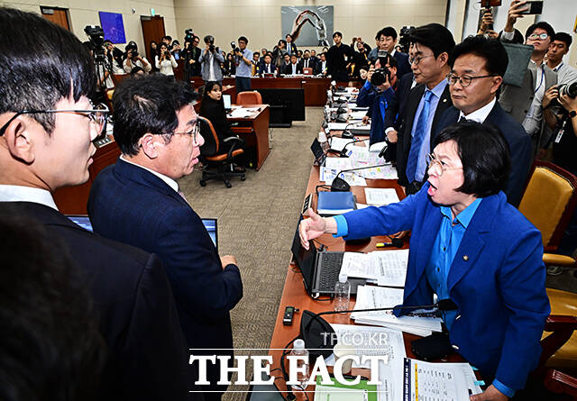 이날 과방위 국정감사에서 김우영 더불어민주당 의원이 박정훈 국민의힘 의원에게서 받은 '욕설 문자'를 공개하며 여야 의원들이 충돌했다.