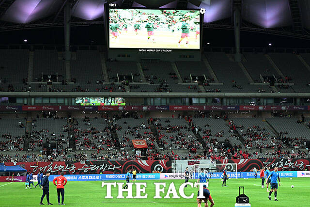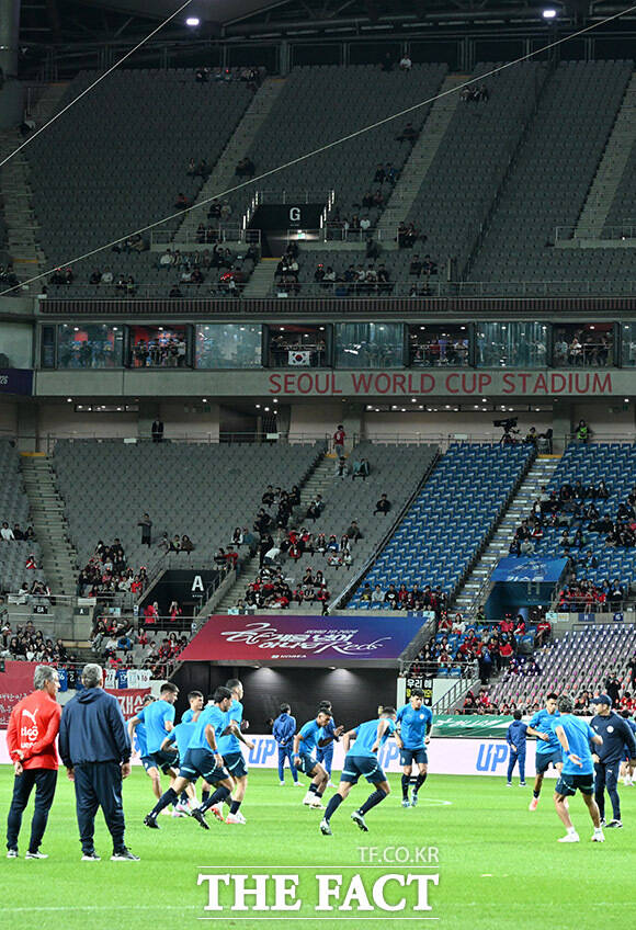[더팩트ㅣ서울월드컵경기장=남용희 기자] 대한민국과 파라과이의 평가전이 14일 오후 서울 마포구 서울월드컵경기장에서 열린 가운데 관중석 곳곳이 비어있다.