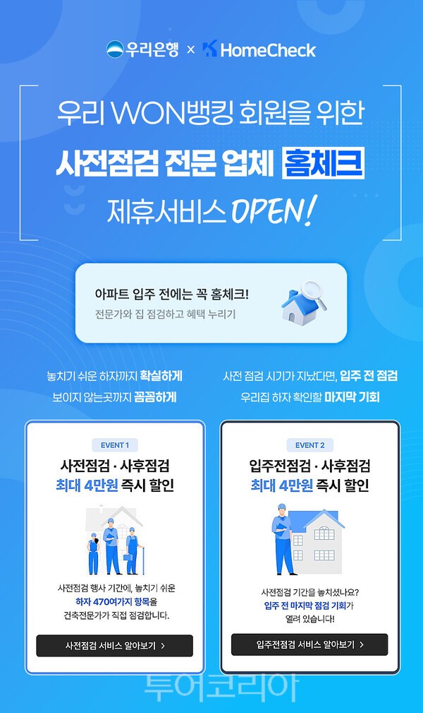 우리은행-홈체크, '아파트 입주 하자 점검 서비스' 제공