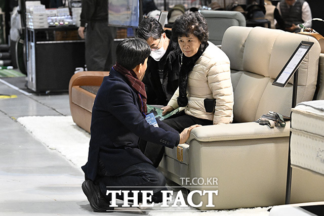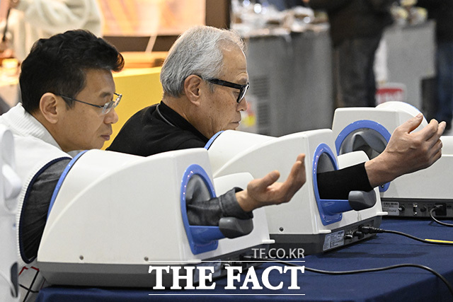 [더팩트 | 송호영 기자] '제10회 서울 건강산업 박람회'와 '제7회 서울 오피스 가구 및 오피스 페어'가 동시 개최된 29일 오전 서울 강남구 코엑스 행사장을 방문한 외국 바이어들이 참여업체의 제품을 체험하고 있다.