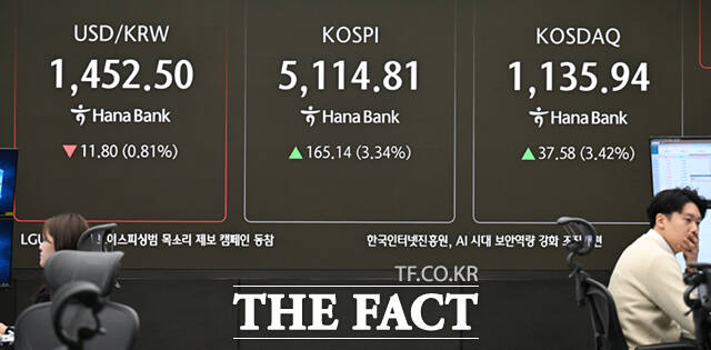 이날 코스피는 전날보다 3.34% 오른 5114.81에 개장했다. 코스닥도 전날 대비 3.42% 오른 1135.94에 출발했다.