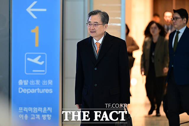 [더팩트ㅣ인천국제공항=남윤호 기자] 조현 외교부 장관이 3일 인천국제공항에서 미국 워싱턴DC로 출국하며 미소짓고 있다. 조현 장관은 이번 방미에서 마코 루비오 미국 국무부 장관과 한미외교장관회담, 핵심광물회의 참석 등 일정에 나선다.