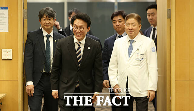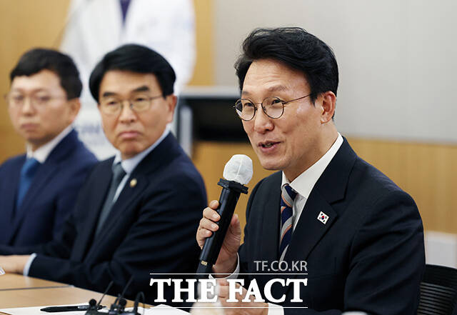 [더팩트ㅣ임영무 기자] 김민석 국무총리가 4일 오후 경기 성남시 분당서울대학교병원에서 열린 희귀질환 진료 의료진 간담회에 참석해 병원 관계자들과 간담회를 갖고 있다.