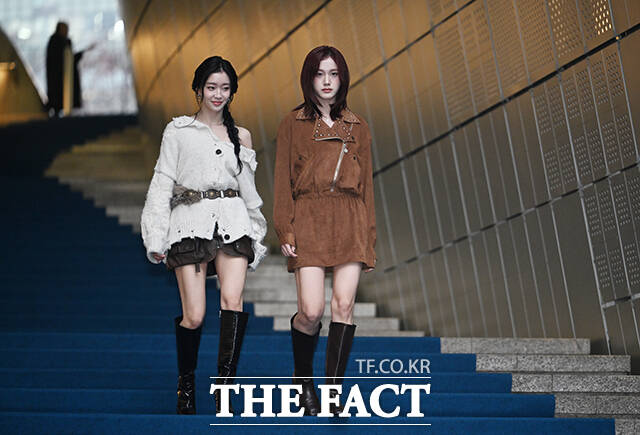 [더팩트ㅣ박헌우 기자] 스테이씨 수민(왼쪽)과 재이가 4일 오후 서울 중구 동대문디자인플라자(DDP)에서 열린 '2026 F/W 서울패션위크' 얼킨 포토월에 참석해 블루카펫을 밟고 있다.