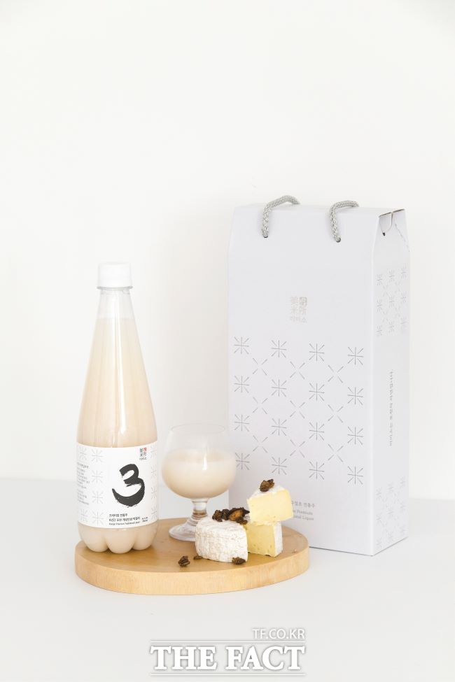 포천 미미소의 '3막걸리'는 포천 햅쌀과 6년근 개성인삼을 사용한 인삼 막걸리다.