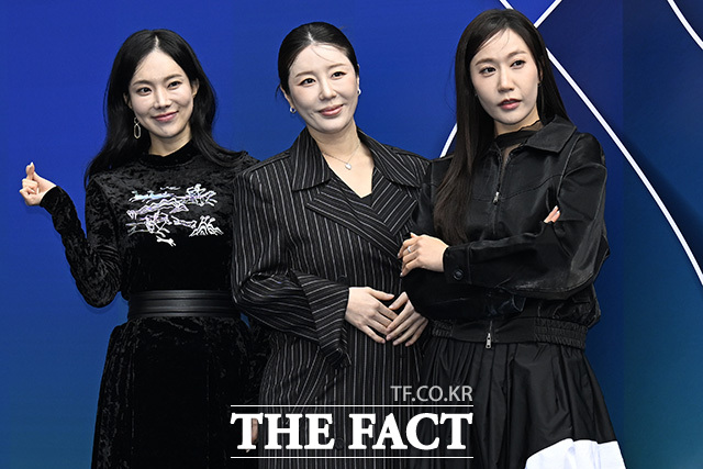 [더팩트 | 송호영 기자] 가수 김나희와 나비, 별사랑(왼쪽부터)이 5일 오후 서울 중구 동대문디자인플라자(DDP)에서 열린 '2026 F/W 서울패션위크' 유가당 포토월에 참석해 포즈를 취하고 있다.
