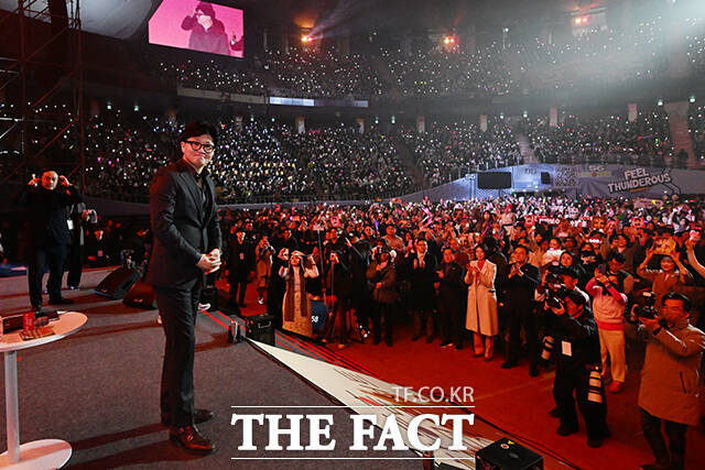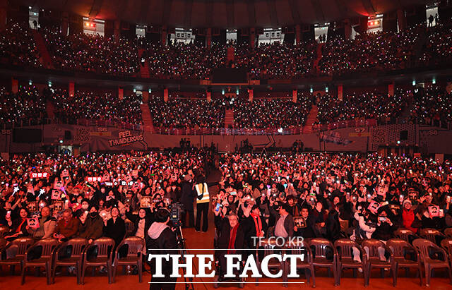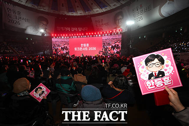 [더팩트ㅣ서예원 기자] 한동훈 토크콘서트 2026이 8일 오후 서울 송파구 잠실종합운동장 실내체육관에서 열린 가운데 지지자들이 환호하고 있다.