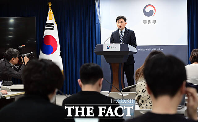 [더팩트ㅣ임영무 기자] 윤민호 통일부 대변인이 10일 오후 서울 종로구 정부서울청사에서 개성공단 중단 10년 계기 통일부 입장을 발표하고 있다.